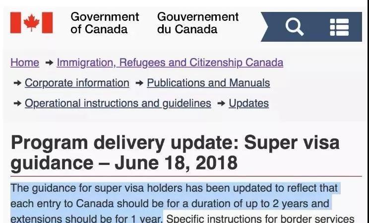 这一次,则强调持有超级签证的访客在每次入境加拿大的时候可以获得两年的停留期,那么可以预计基本上大家都可以拿到两年了。此次更新还增加了一年延期,让超级签证变得更为实用。