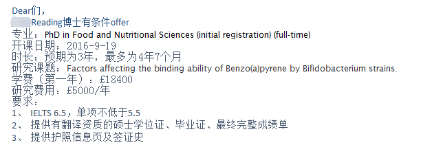 博士申请的过程是漫长、坎坷的,一次又一次的套磁、多次的碰壁,刘同学很多次都要放弃,特别是6月底刘同学毕业,最晚离校时间到了,自己不知道还怎么样跟家长说,因为在北京租房子等结果复习雅思都要用钱。但是我们的文案老师、外联老师一直在与学校导师沟通、不断的尝试,因为时差问题,有时晚上半夜跟英国打电话沟通,功夫不负有心人,最后刘同学收到了利兹跟雷丁大学的offer,当刘同学收到的时候自己都不敢相信,非常高兴。
