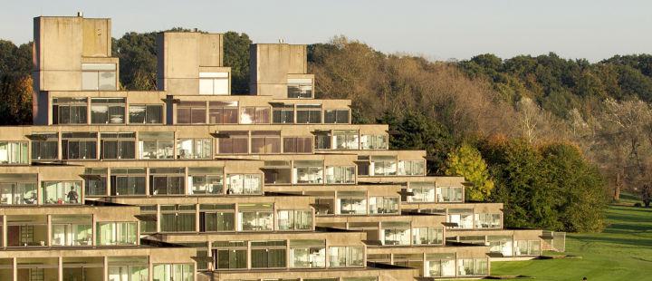 图上的就是东英格利亚大学的学生宿舍,你敢相信吗?这座学生公寓是建筑大师丹尼斯·拉斯登(伦敦皇家国立剧场建筑设计师)设计的。看上去是不是超级炫酷。坐拥全视野河景及Norfolk的乡村风光。位于校园中心地带,且有比一般宿舍大上许多的房间。关键是性价比还很高高,学生评价:“这里是社交气氛最浓的宿舍,住在这里感觉超惊喜 ”。