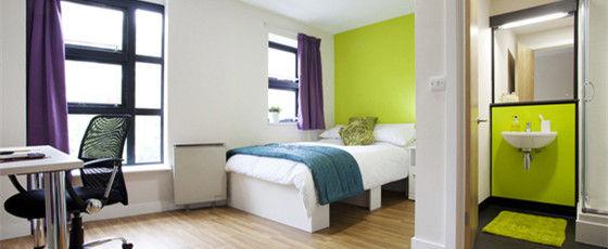 Study bedroom和shared flats这两种宿舍类似于单人间,房型较小,房间里配有基本的家具,3-4个人共用一个卫生间。En-suite room的房型一般较大,较前两者区别在于有独立卫浴,有卫生要求比较高的同学可以选择这种房型。而Studio是所有宿舍类型最贵的一个,房间里所有设施很齐全,只是厨房是开放式的,做饭的时候房间里油烟味会很大。