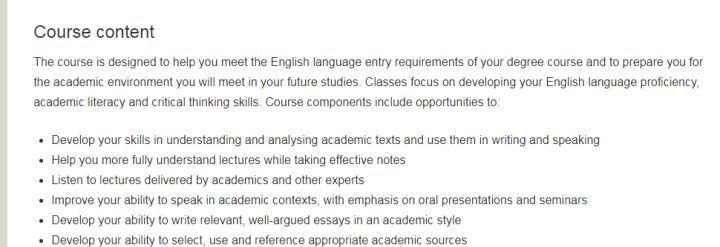 去英语系国家读书,无论本科还是硕士,对英文都有一定的要求,通常在雅思6.5-7分。但因为大家有时候会在总分和小分差一些,学校就开设了针对就读本科和硕士的学生开设了语言课。语言班基本是学校的语言中心开设。