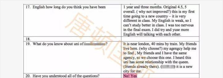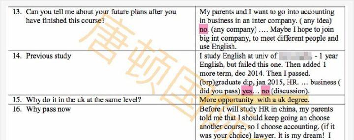 第15题问为何要申请同一等级的课程(英国学生签非常重视学术进阶),学生答非所问。