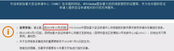 2.来自亚洲、亚太和美洲的申请人将于12月31日起,在申请加拿大签证时须亲赴签证中心录指纹。(中国公民11月2日开始)