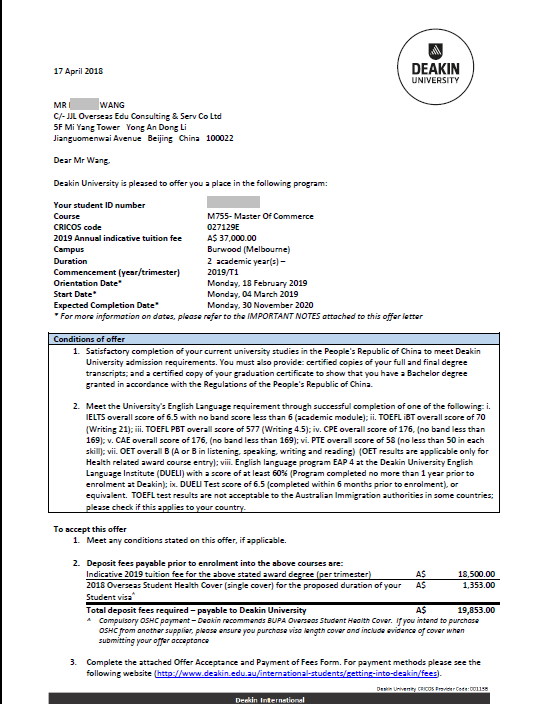 申请过程:因为两人去过澳大利亚,喜欢墨尔本,综合成绩考虑,推荐迪肯大学等院校,过程中瑞鹏留学网老师针对他们跨专业申请的情况,辅导做了多次的文书修改,并且针对两口子一起留学如何规避移民风险做了很多的指导和文书的建议,递交后分别被Master of Commerce(Finance)和Master of Commerce(Marketing)录取,从递交到拿到Offer,仅仅用了4天时间。从校服到婚纱的感情,老师由衷的祝贺你们!爱笑的你们,一起经历和见证所有幸福的时刻。一起奋斗,为更好的将来!加油。