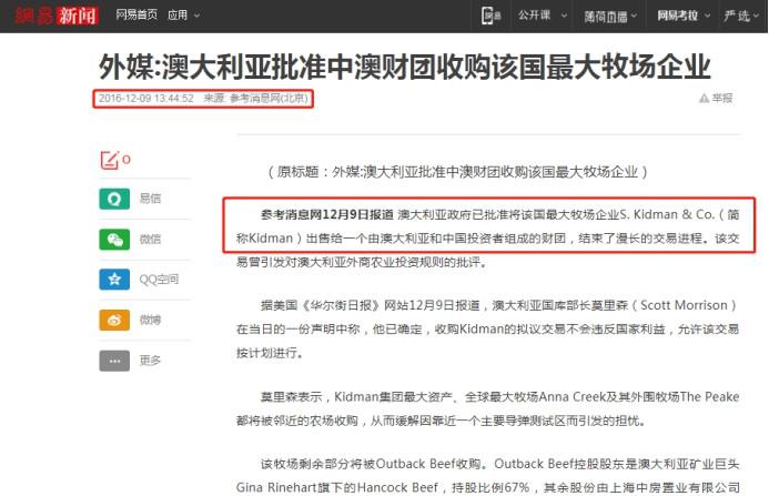 网易新闻报道S. Kidman & Co公司被收购的新闻
