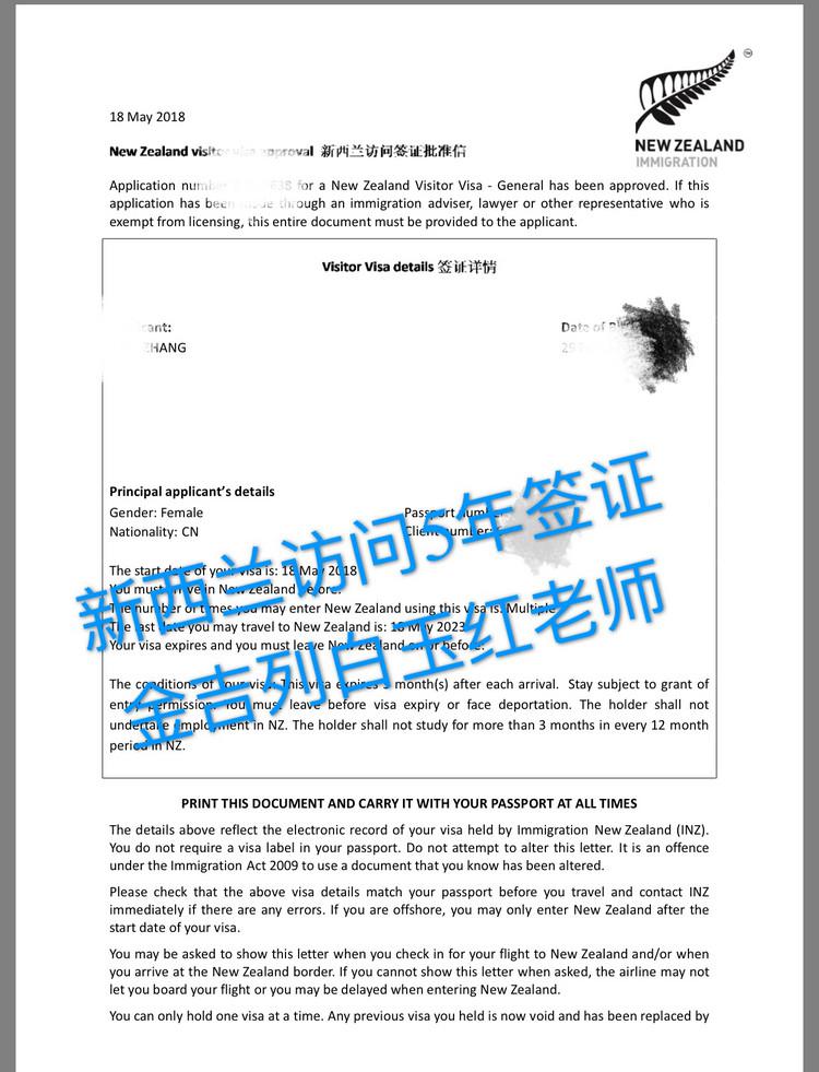 学生父母也是想去了南半球也要去下新西兰去玩,也办理了新西兰的旅游签证,