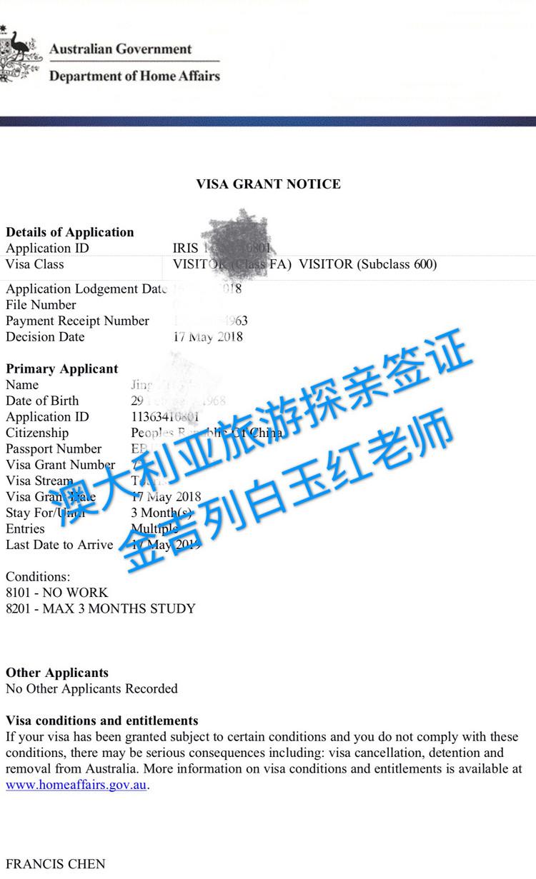 在全球留学网老师的帮助下,学生父母在1周内拿到了澳洲1年多次往返签证