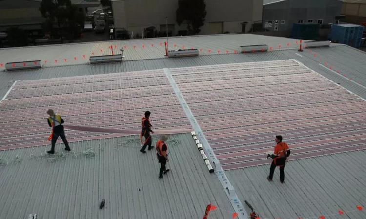不仅成本低、易生产,安装起来也方便快捷。由于材质轻薄,只需用普通双面胶粘贴即可固定。比如此次在CHEP厂房上安装的640米长的薄膜太阳能电池,覆盖了200平方米的面积,只用了五名安装人员一天的时间就全部完成了。