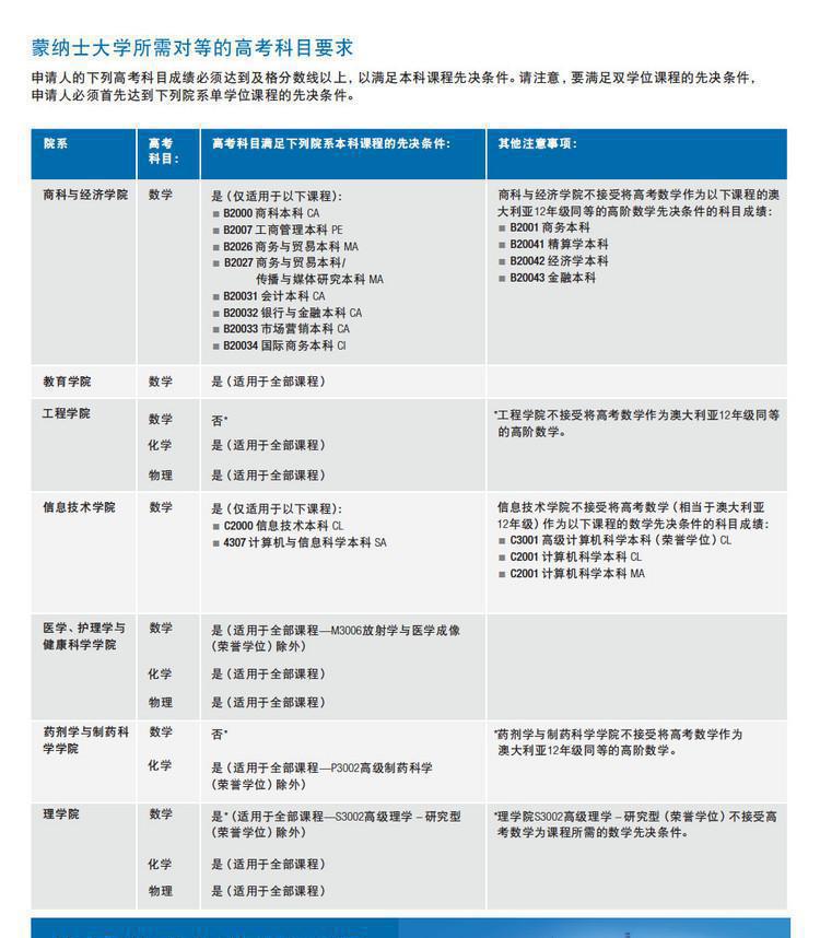 如果达到所在省一本较低分数线,即可满足大部分蒙纳士大学本科学士学位的学术录取要求,具体本科课程见下表2。
