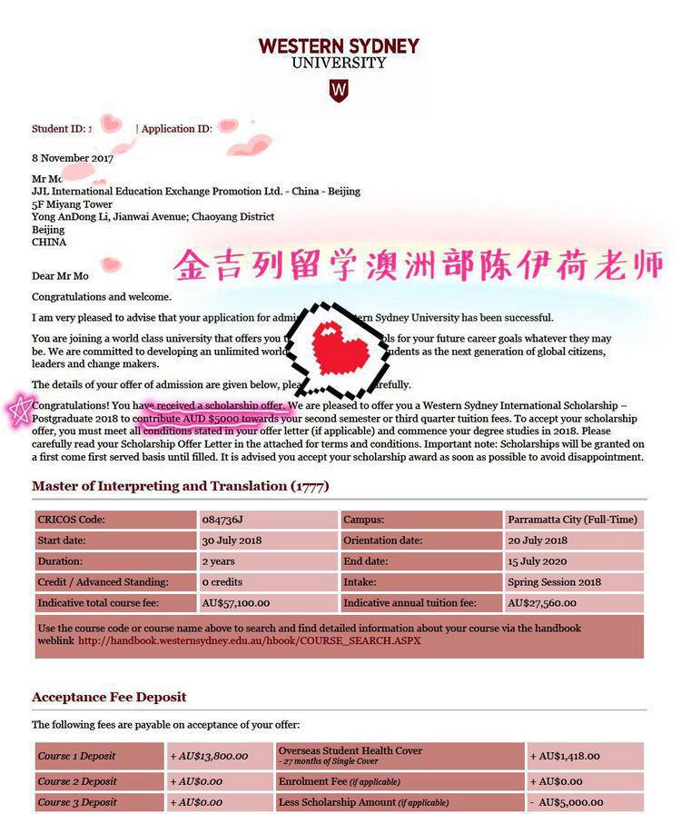 录取结果:UNSW新南威尔士、UQ昆士兰大学、MQ麦考瑞大学、UWS西悉尼大学