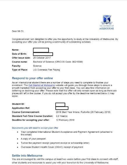 学生高考成绩很优秀,高于一本线较多,国内录取的院校也为985院校,最终确定了墨尔本大学、悉尼大学、新南威尔士大学三所学校进行申请。