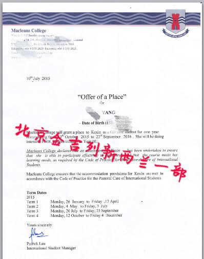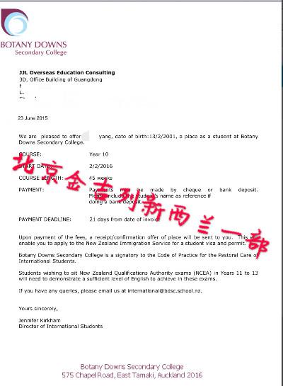 学生家长朋友之前找瑞鹏留学网老师办理的中学,所以家长也比较放心将孩子得事情委托给瑞鹏留学网老师办理。根据孩子得学习情况,综合评估之后确定了两所学校。两所学校都是在新西兰比较好的学校,decile值都是10级的学校,学生和家长也比较任何学校的实力。确定学校之后,就要赶紧跟学校敲定入学名额,因为新西兰所有中小学得名额有限,为了保证学生的语言环境,一般一个年纪只有一到两名国际留学生。所以学校至少要提前一年申请,否则很容易因为学校满位而被拒录。中学期间,孩子可以先简单学习一些英语,为将来到新西兰之后的生活做基础。