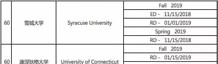 那么,综合排名前60的美国大学会在什么时间截止申请呢?