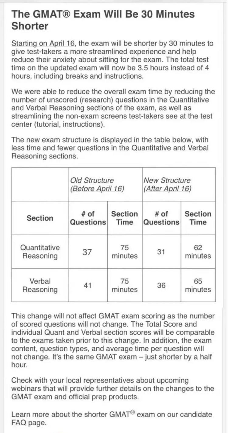 GMAT又迎来新变化! 2018年4月16日开始, GMAT考试将由4小时缩短至3.5小时!