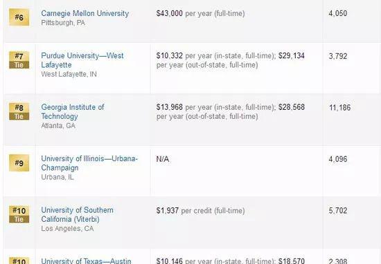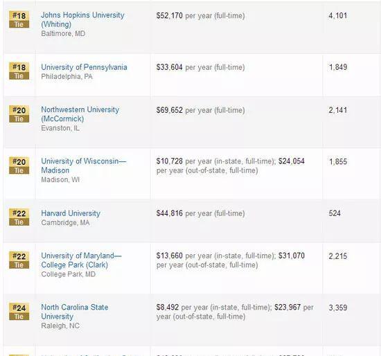 2019年USNEWS美国研究生最佳工程学院排名,整体变化不大,相较于去年工程学院排名,TOP5的美国院校位置不变:美国理工名校-麻省理工学院依旧蝉联榜首之位;斯坦福大学紧随其后,位列第二;美国著名的加州大学分校-加州大学伯克利分校名列第三;被世界公认的典型精英学府之一:加州理工学院依旧排名第四;TOP5的最后一所是位于美国宾夕法尼亚州的匹兹堡的卡耐基梅隆大学,其它美国大学工程学院排名如下: