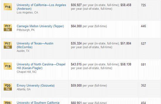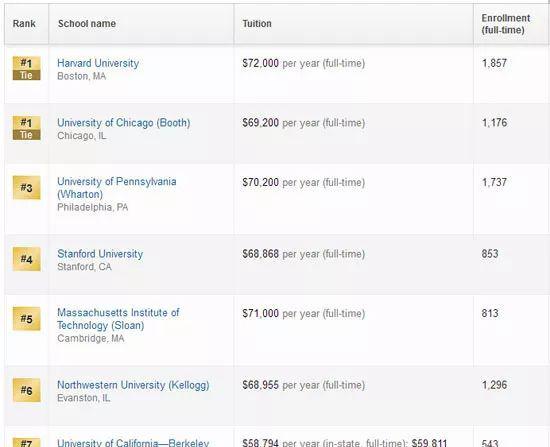 今年位于全美最佳研究生商学院榜首之位的仍是美国顶尖、世界一流、美国本土历史最悠久的哈佛大学;芝加哥大学超越宾夕法尼亚大学,并列第一;宾夕法比亚大学紧随其后,位列第三;临近美国硅谷产业园区,美国占地面积第六大的顶尖私立名校,斯坦福大学名列第四;位于美国马萨诸塞州剑桥市的著名理工名校:麻省理工学院位列第五,具体排名如下: