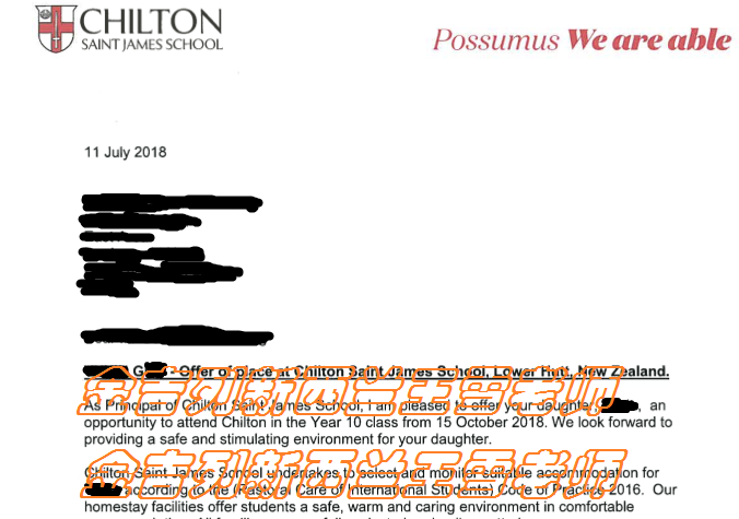 学生选择入读ChiltonSaintJamesSchool。该校成立于1918年,是一所历史悠久的有声望的私立女子中学,和英国圣公会有密切联系,学校在所有的国家考试中成绩优异,学生在这里可以学到如何成为领导的技能。学校位于LoweiHutt,惠灵顿港以北,毗邻惠灵顿。校园坐落在一片幽雅住宅区内,校内风景如画,教学楼设计独特,各种教学设备俱全,并拥有两个计算机房、三间美术制作室、还有一个体育馆、小型剧院、网球场、游泳池、运动场和两个图书馆。