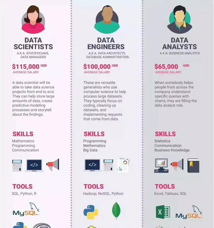 上面可以看出数据科学家年薪在11万美金以上,数据分析师也是在年薪6.5万美金以上。