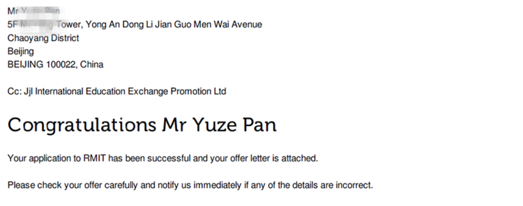 录取结果:悉尼大学,皇家墨尔本理工大学,悉尼科技大学