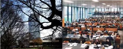 湖边耸立的图书馆,外表俊冷,备考时的图书馆内部可是相当火热!
