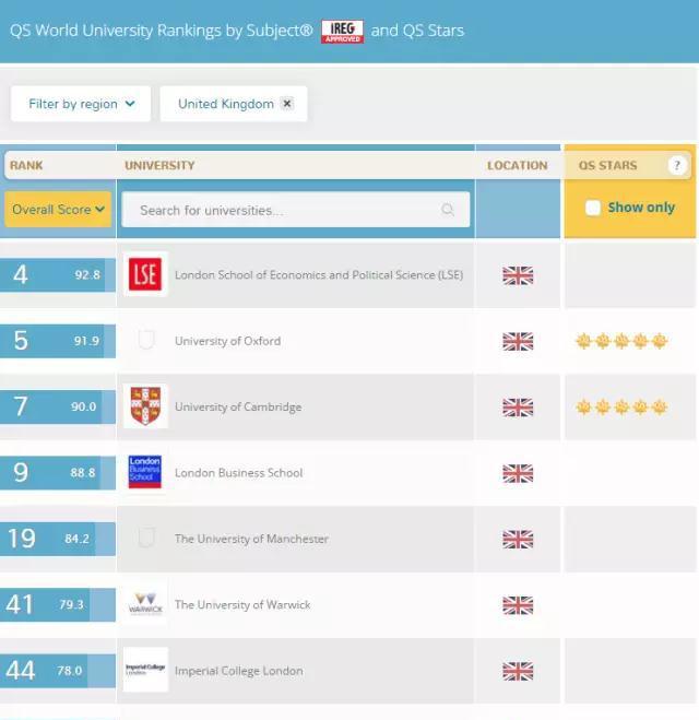 最新的QS世界大学会计与金融专业排名中,世界前50的院校,有8所英国大学。