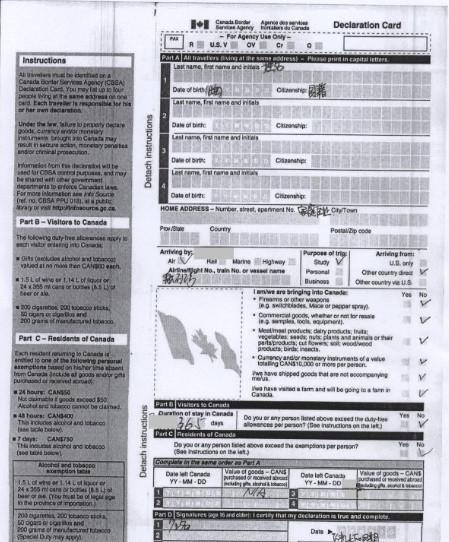 飞机上填写的海关申报卡:如下:(询问空姐填写即可)