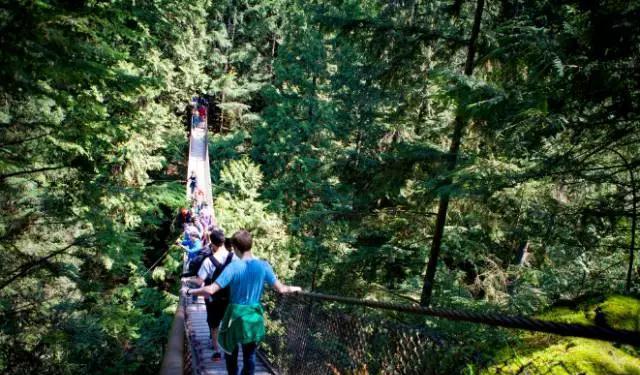 别担心,也有不花钱的选项,北温哥华的林恩峡谷公园Lynn Canyon Park,交通方便,还有免费版的mini吊桥,还有深水潭,徒步路线….