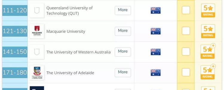 从中我们可以看出其中不仅仅是八大的就业率高,其中四星大学也表现突出,尤其UTS和RMIT。UTS和RMIT的个别专业在世界排名十分靠前,甚至比八大排名还靠前,在这次的排名毕业生的就业率排名上也超过很多其他澳大利亚知名大学。