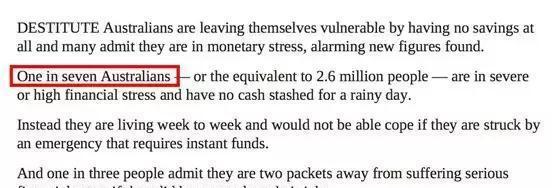 统计数据显示,七分之一的澳大利亚人(约260万人)没有存款!