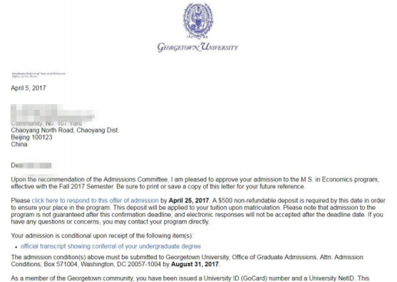 录取结果:University of Connecticut康涅狄格大学 University of Southern California 南加州大学 University of Pittsburgh匹兹堡大学 Georgetown University乔治城大学