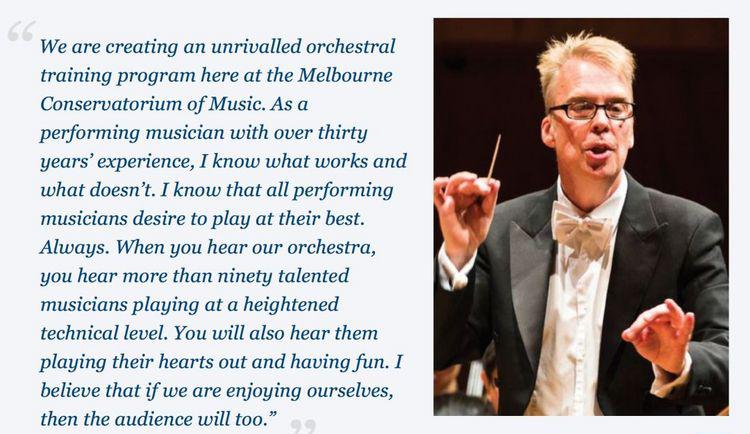 墨尔本大学交响乐团由世界著名指挥家副教授理查德戴维斯带领,由最优秀的古典音乐学生团体组成,是墨尔本高校里面最优秀的交响乐演出团体。