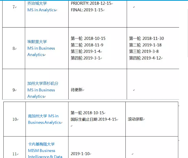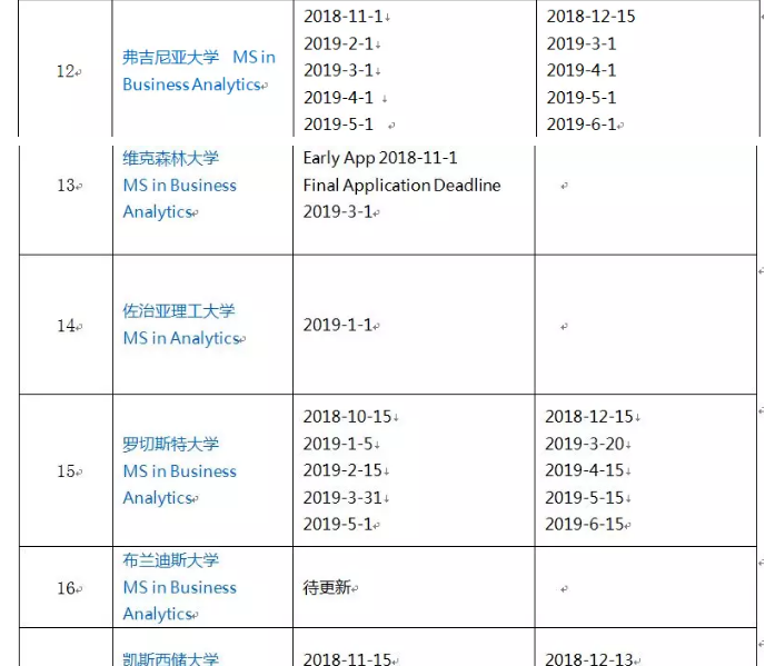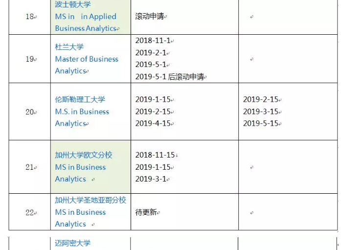 19申请季来临, 何时申请非常重要。老师今天就为大家整理了U.S. News中综合排名前50院校的商业分析项目的截止时间