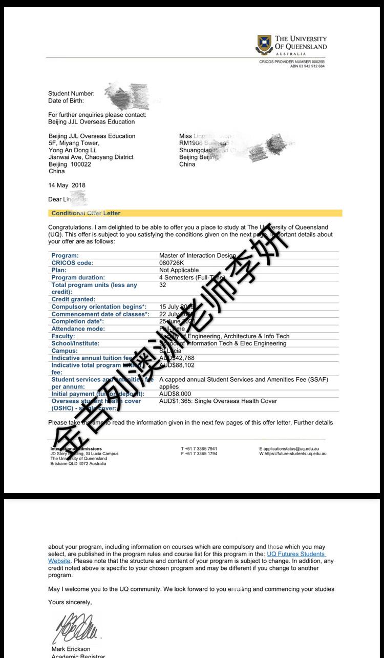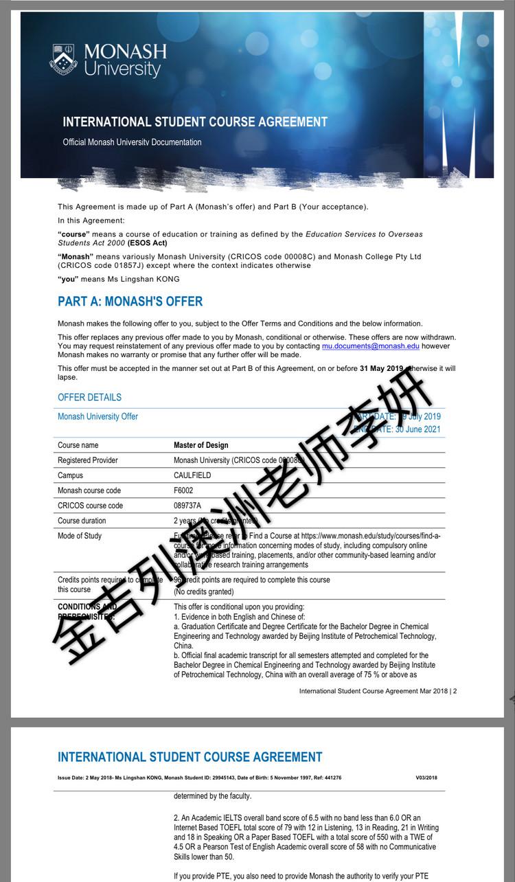 学生孔同学,北京化工大学和北京石油化工学院双培生,化学工程专业,大三在读,本科成绩77。根据学生的意愿规划申请莫纳什大学设计(多媒体设计)和昆士兰大学的交互设计专业,最终全部拿到录取。