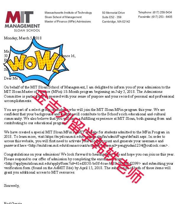 录取专业:MIT金融硕士 MSF 18-Month Program