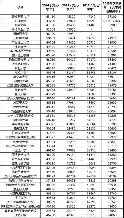 四年制美国私立大学费用(不包括住宿、伙食、交通等费用)平均为5-6万美元。