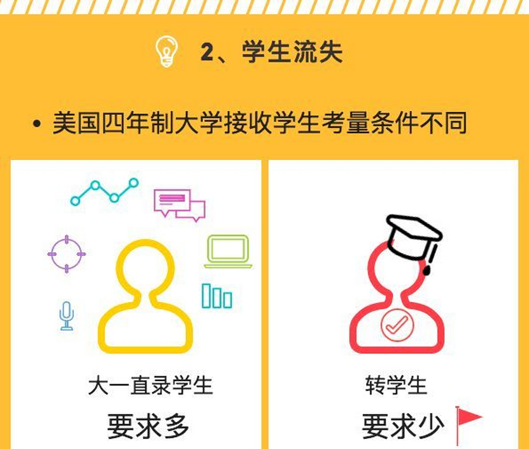 A:美国大学有流失率,一些大一学生在入学后可能会出现转学、休学,以及退学等情况,即美国大二学生会比大一学生少,空出来的位子对吸收转学生创造了基础。