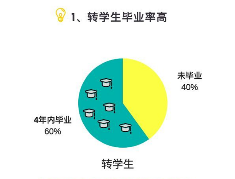 A:美国本科学生数据库统计,National Student Clearinghouse,60%转学生能够在4年内拿到本科毕业证,美国四年制大学大一入学的学生6年毕业率不到50%,近48%。