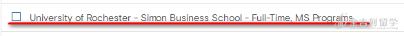 6. 输入:我们确定的学校的英文全称或者代码,以下以罗彻斯特大学-金融硕士为例