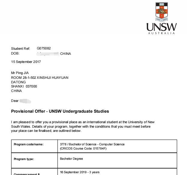 录取院校:The University of Sydney悉尼大学; University of South Wales新南威尔士大学;University of Queensland昆士兰大学;