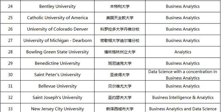 商业分析作为一个新兴的热门专业,US News还没有对其进行排名,所以很多人无法直观了解各学校商业分析项目的质量。不过, TFE Times已经发布了美国商业分析研究生项目的排名供大家参考,其排名参考因素包括: