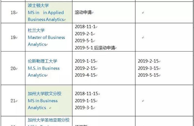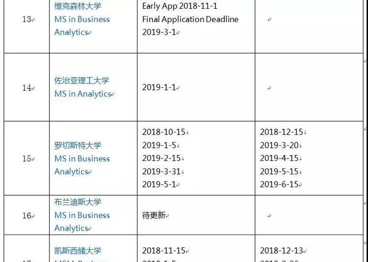 19申请季来临, 何时申请非常重要。瑞鹏留学网老师今天就为大家整理了U.S. News中综合排名前50院校的商业分析项目的截止时间。