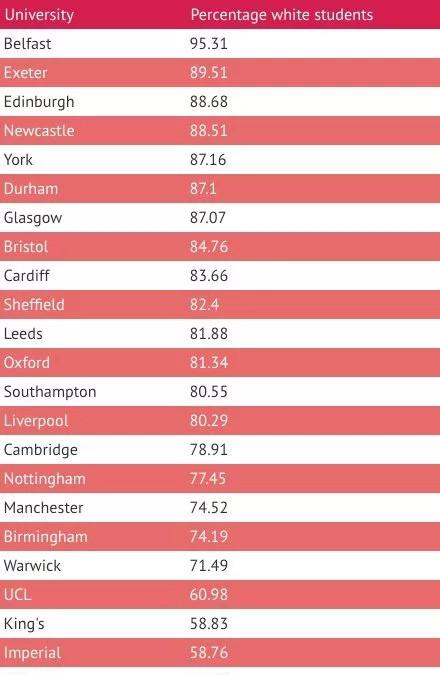 英国罗素集团大学的白人学生平均比例,
