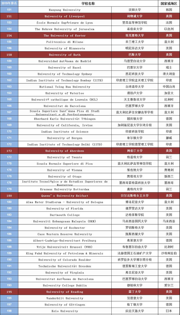 【精华】2019年最新QS世界大学排名