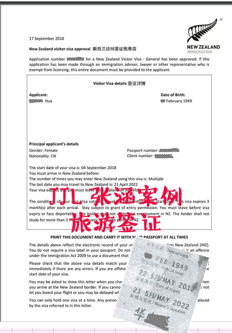 客户背景:1949年生人,外孙子在新西兰读大学,希望去探亲
