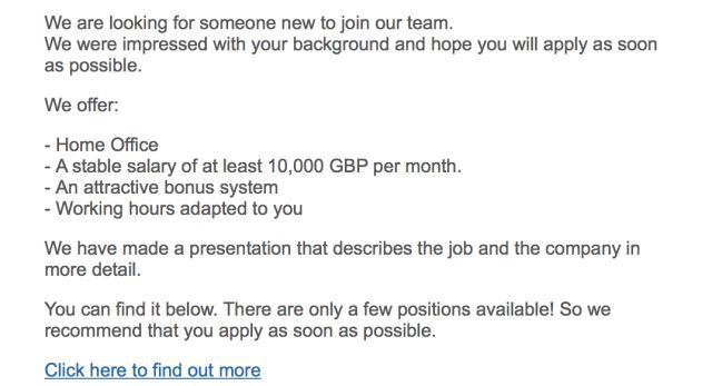 2. 《仿冒UKBA或Home Office的邮件诈骗》:经常会在你的邮箱里莫名其妙的出现一封电子邮件,也要声称收集你的护照和银行卡信息,对你的签证进行核验。识破此类骗局的关键:注意查看发件人的邮箱后缀,没有官方机构会用那种乱七八糟一长串的后缀域名。