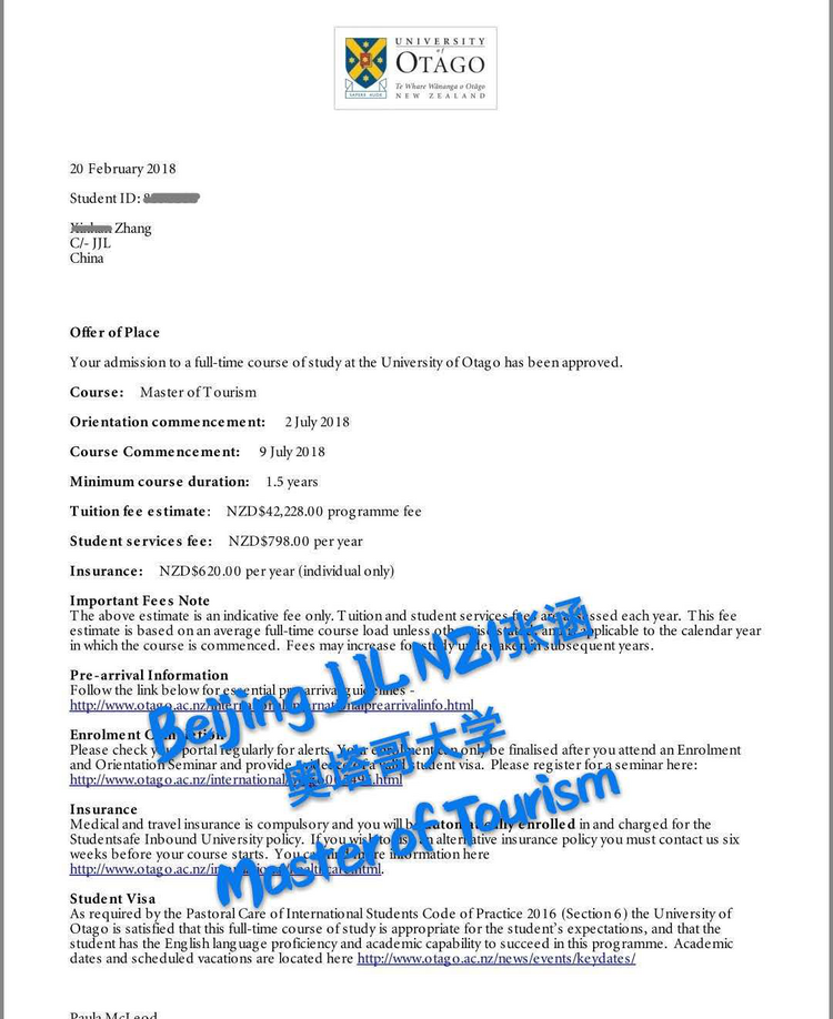 年成立至今,就作为独立部门存在,所以你把新西兰作为首选的话,到我们这里办理是最好的选择。张同学,本来约好了分公司见面,经过一通电话之后,直接决定放弃找分公司办理。几次电话和微信后,学生在异地汇款,开始着手办理。准备自己的成绩单,写个人简历和陈述,一切都在有条不紊的进行。经过精心的准备,张同学相继收到奥塔哥大学、奥克兰大学和奥克兰理工大学的录取通知书,并且是豁免雅思的非条件录取。签证材料已经在有条不紊的进行中了,7月份就要开始新西兰的新生活了。