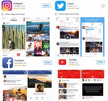 Facebook、Twitter、Instagram、Youtube、Messege、Whatsapp、Skype