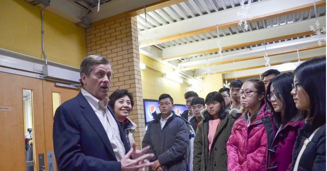 清晨七点天还没亮,同学们就踏着积雪来到社区中心,加入了义工队伍。大家井然有序地注册、准备。多伦多市长John Tory和多伦多经济文化发展委员会主席Michael Thompson也来到现场,对师生以及社区各界人士的善举表示感谢。