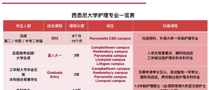 入学门槛低,时间短。 如果你已经是海外注册护士,那可以直接申请免课,有可能免去0.5年-1.5年的学习。也就是只用2.5-1.5年你就可以拿到澳洲的护理学士学位和注册护士执照。如果没有背景也没关系,直接从大学本科开始读,没有专业限制。