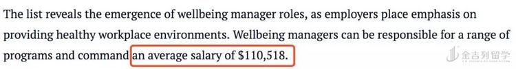 因为雇主往往强调提供健康的工作环境,所以健康经理显得格外重要,其平均薪水能高达$110,518澳币。